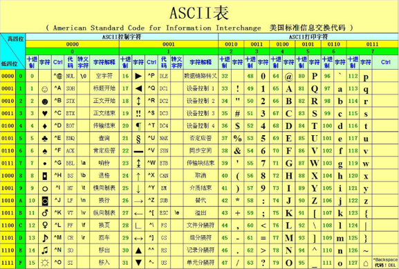 在上述方法中,charCodeAt 方法返回的是指定位置上字符对应的 ASCII 码,ASCII 码对照表如下: