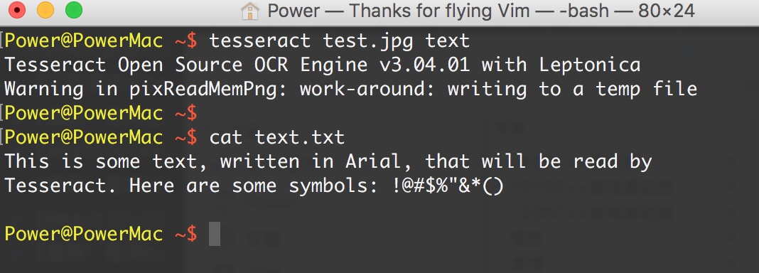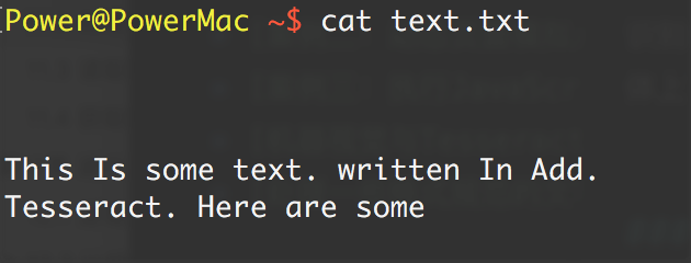 通过下面的命令运行 Tesseract,读取文件并把结果写到一个文本文件中: tesseract test.jpg text