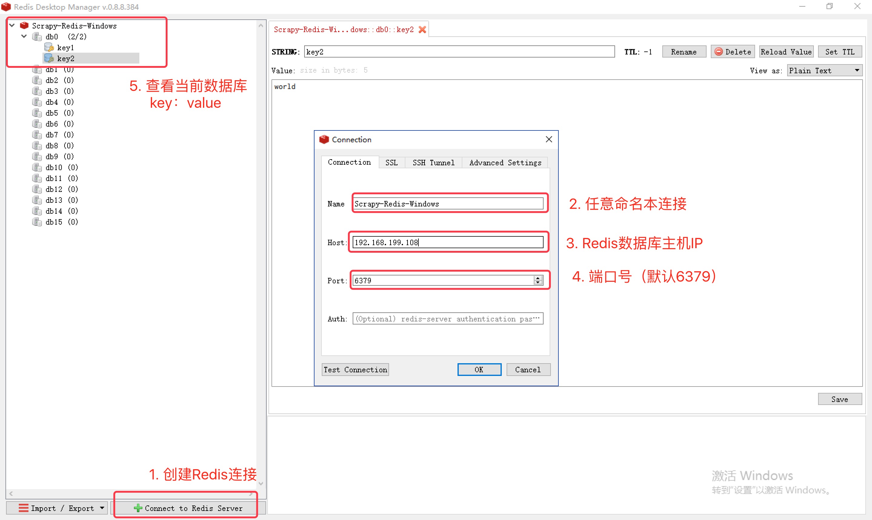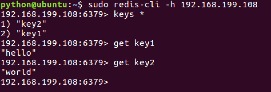 redis-cli -h 192.168.199.108,-h 参数表示连接到指定主机的redis数据库